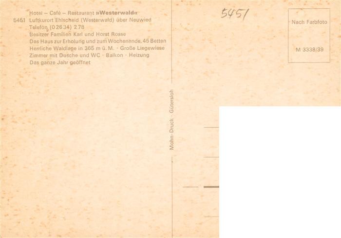 73896936 Ehlscheid Hotel Restaurant Westerwald Gastraum postalisch nicht gelaufen Erhaltung siehe scans [FriedD77] KatCode: 11110007138015