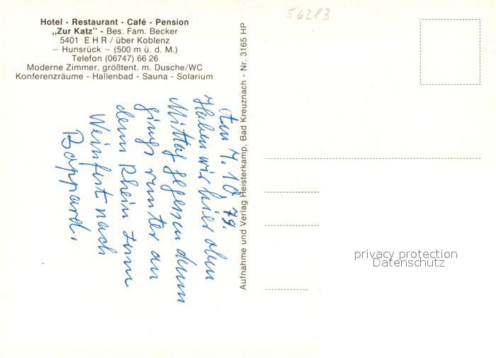 73651947 Ehr Nastaetten Hotel Restaurant Cafe Zur Katz Gaststube Hallenbad postalisch nicht gelaufen Erhaltung siehe scans [WerneD78] KatCode: 11110007141035