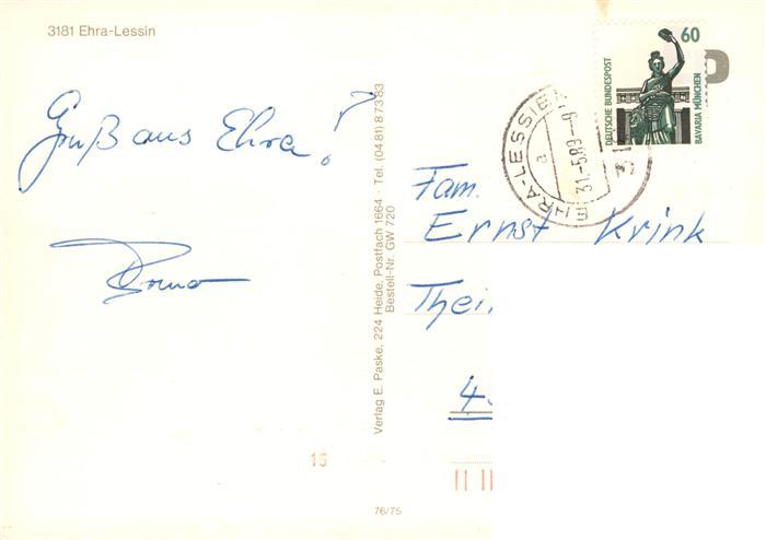 73883862 alte Postkarte Ehra-Lessien Kirche Teilansicht postalisch gelaufen Erhaltung siehe scans [FriedD77] KatCode: 11110003151008