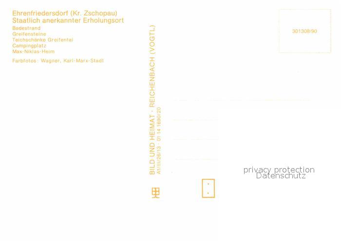 72867874 Ehrenfriedersdorf Erzgebirge Erholungsgebiet Greifensteine Greifenbachstauweiher Badestrand Teichschaenke Campingplatz Max Niklas Heim postalisch nicht gelaufen Erhaltung siehe scans [FriedD77] KatCode: 11110014171080