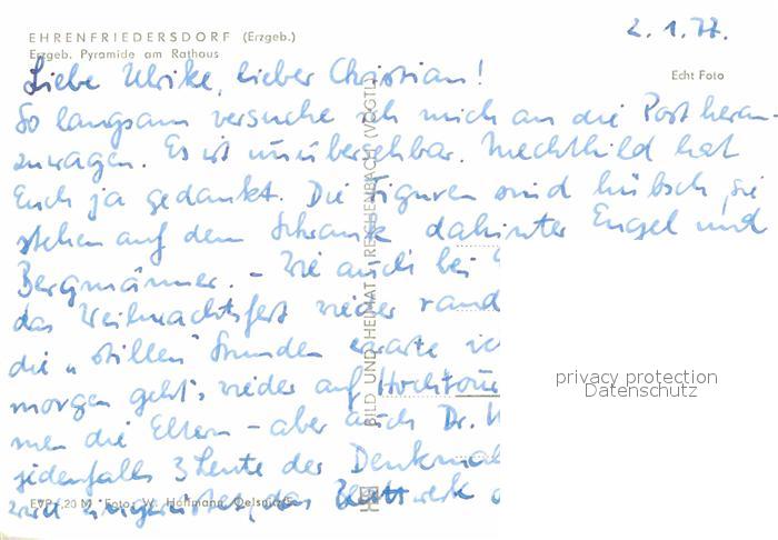 72636072 Ehrenfriedersdorf Erzgebirge Pyramide am Rathaus Weihnachtszeit postalisch nicht gelaufen Erhaltung siehe scans [FriedD77] KatCode: 11110014171080