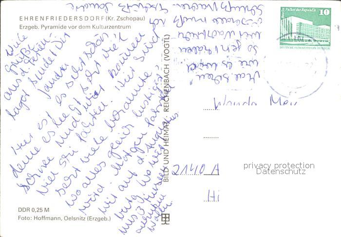 72134496 alte Postkarte Ehrenfriedersdorf Erzgebirge Pyramide vor dem Kulturzentrum bei Nacht postalisch gelaufen Erhaltung siehe scans KatCode: 11110014171080