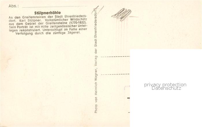 73807714 Ehrenfriedersdorf Erzgebirge Stuelpnerhoehle Wildschuetz Unterschlupf postalisch nicht gelaufen Erhaltung siehe scans [WerneD78] KatCode: 11110014171080