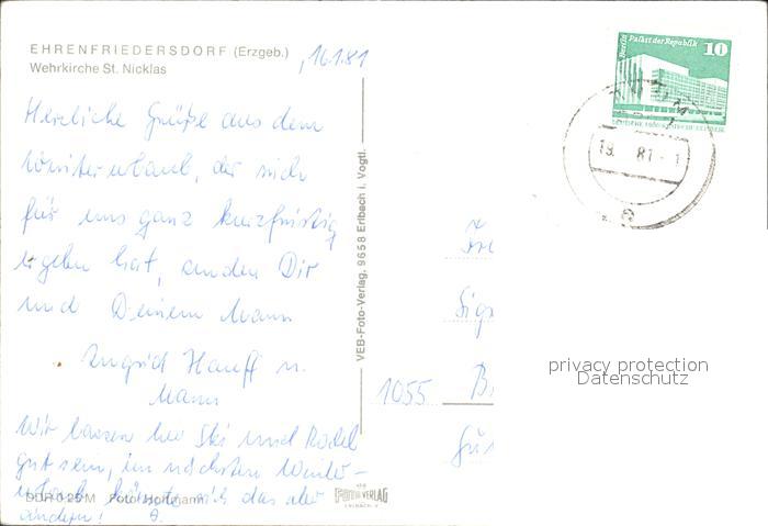 72135829 alte Postkarte Ehrenfriedersdorf Erzgebirge Wehrkirche St Nicklas postalisch gelaufen Erhaltung siehe scans KatCode: 11110014171080