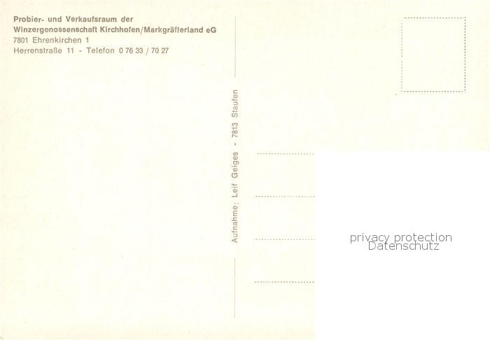 73778975 Ehrenkirchen k e Winzergenossenschaft Kirchhofen Probierstube postalisch nicht gelaufen Erhaltung siehe scans [WerneD78] KatCode: 11110008315131