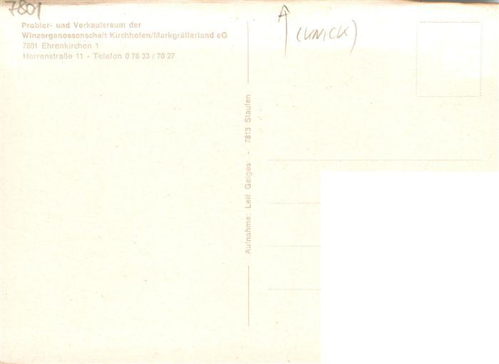 73932074 Ehrenkirchen Probier- und Verkaufsraum der Winzergenossenschaft Kirchhofen Markgraeflerhand eG postalisch nicht gelaufen Erhaltung siehe scans [FriedD77] KatCode: 11110008315131