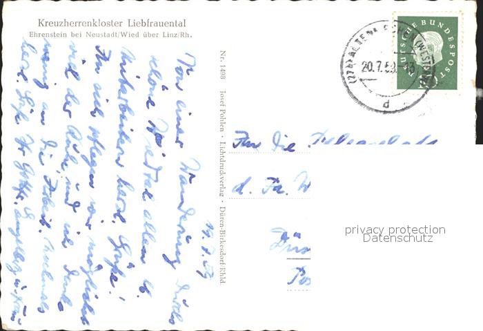 72216423 alte Postkarte Ehrenstein Wied Kreuzherrenkloster Liebfrauental postalisch gelaufen Erhaltung siehe scans KatCode: 11110007138044