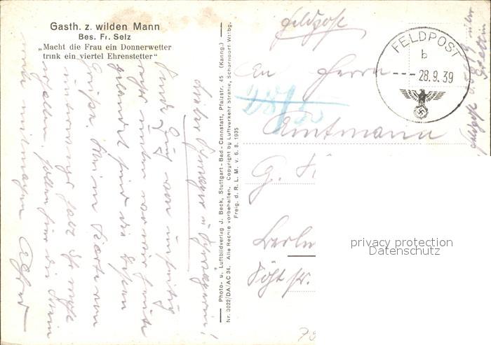 31919905 alte Postkarte Ehrenstetten Fliegeraufnahme Gasthaus Zum wilden Mann NZ3 postalisch gelaufen Erhaltung siehe scans KatCode: 11110008315131