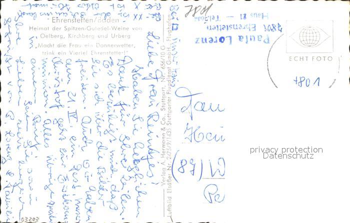 31734530 alte Postkarte Ehrenstetten Fliegeraufnahme Oelberg Kirchberg und Urberg postalisch gelaufen Erhaltung siehe scans KatCode: 11110008315131