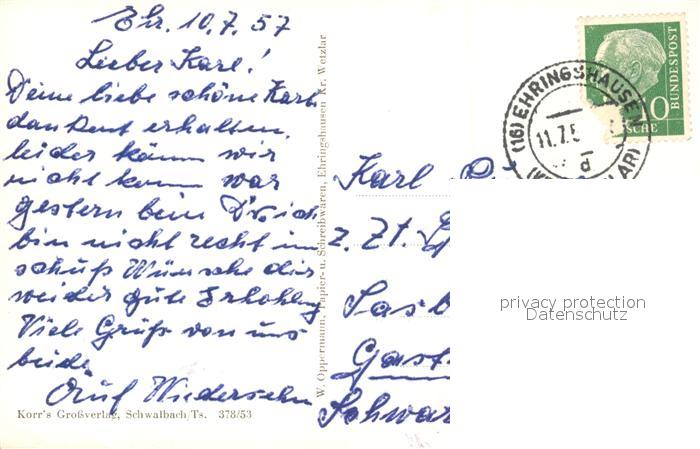 33045086 alte Postkarte Ehringshausen Dill Blick vom Hoellenberg postalisch gelaufen Erhaltung siehe scans [NatalD47] KatCode: 11110006532008