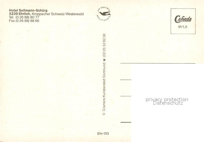 73720268 Ehrlich Westerwald Hotel Sollmann Schuerg Hallenbad Gaststube Terrasse postalisch nicht gelaufen Erhaltung siehe scans [WerneD78] KatCode: 11110007143236
