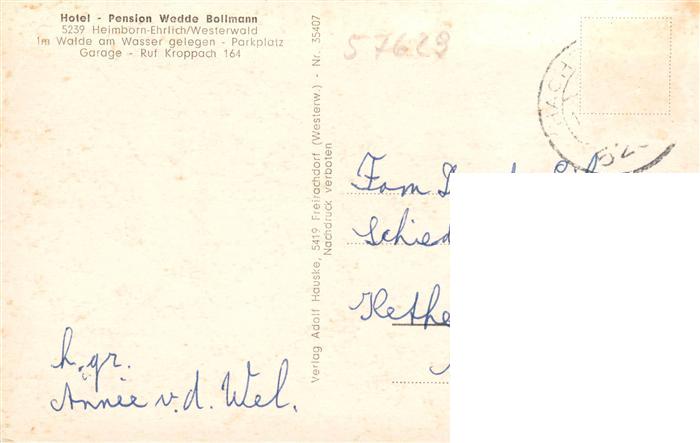 73896399 alte Postkarte Ehrlich Westerwald Kroppacher Schweiz Hotel Pension Wadde Bollmann Terrasse Gaststube postalisch gelaufen Erhaltung siehe scans [WerneD78] KatCode: 11110007143236