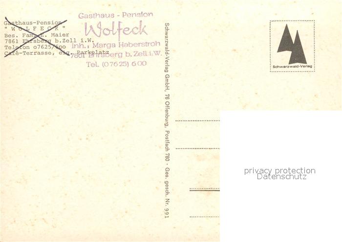 73020402 Ehrsberg Gasthaus-Pension Wolfeck postalisch nicht gelaufen Erhaltung siehe scans [PaolaD17] KatCode: 11110008336106