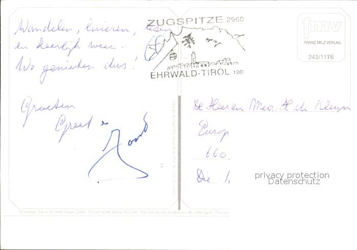 72254424 alte Postkarte Ehrwald Tirol Alm Seilbahn Zugspitze postalisch gelaufen Erhaltung siehe scans KatCode: 11390331070807