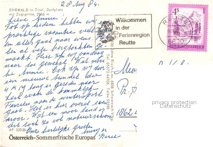 72903578 alte Postkarte Ehrwald Tirol Dorfplatz mit Zugspitze postalisch gelaufen Erhaltung siehe scans [FriedD77] KatCode: 11390331070807