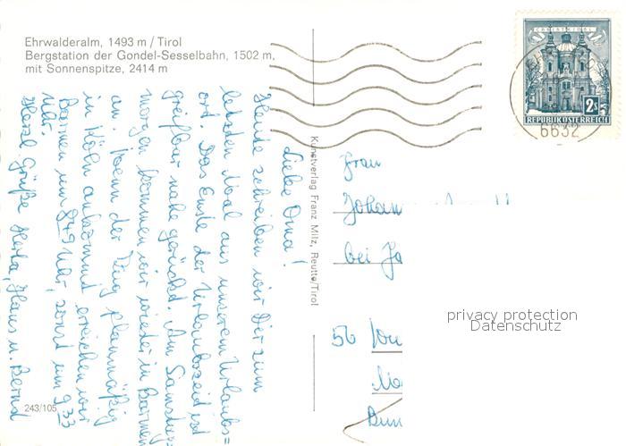 73337980 alte Postkarte Ehrwald Tirol Ehrwaldalm Bergstation der Gondel Sesselbahn mit Sonnenspitze postalisch gelaufen Erhaltung siehe scans [WerneD78] KatCode: 11390331070807