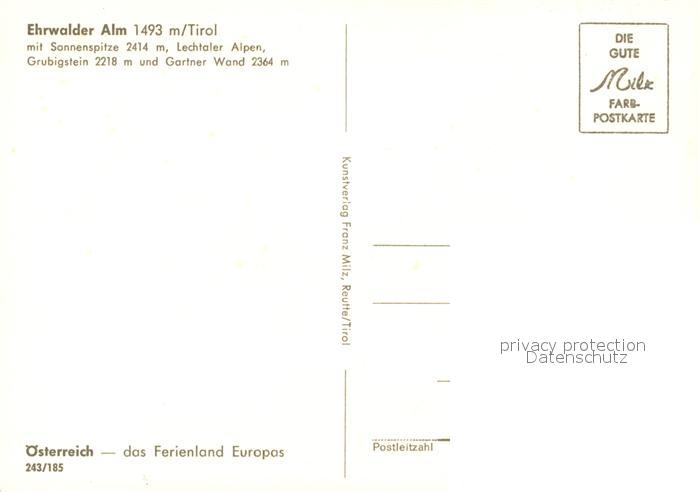 73271553 Ehrwald Tirol Ehrwalder Alm mit Sonnenspitze Lechtaler Alpen Grubigstein Gartner Wand postalisch nicht gelaufen Erhaltung siehe scans [FriedD77] KatCode: 11390331070807