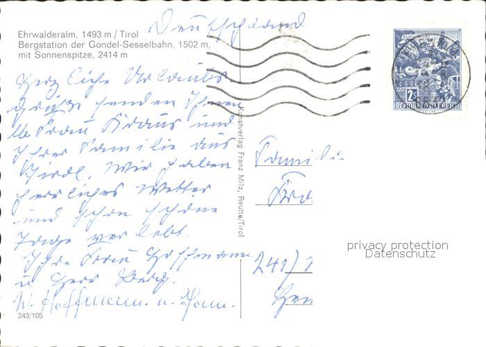 72213727 alte Postkarte Ehrwald Tirol Ehrwalderalm Bergstation der Gondel Sesselbahn mit Sonnenspitze postalisch gelaufen Erhaltung siehe scans KatCode: 11390331070807