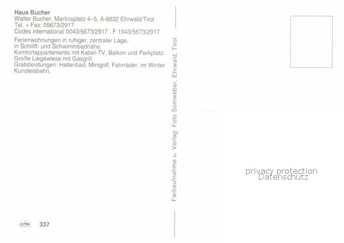 72681760 Ehrwald Tirol Ferienwohnungen Haus Bucher postalisch nicht gelaufen Erhaltung siehe scans [FriedD77] KatCode: 11390331070807