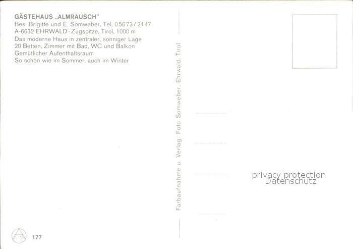 71954932 Ehrwald Tirol Gaestehaus Almrausch postalisch nicht gelaufen Erhaltung siehe scans KatCode: 11390331070807