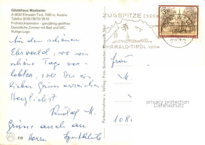 72666028 alte Postkarte Ehrwald Tirol Gaestehaus Woeberler postalisch gelaufen Erhaltung siehe scans [WerneD78] KatCode: 11390331070807