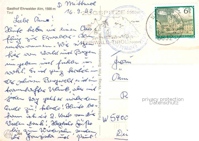 72899276 alte Postkarte Ehrwald Tirol Gasthof Ehrwalder Alm postalisch gelaufen Erhaltung siehe scans [NatalD47] KatCode: 11390331070807