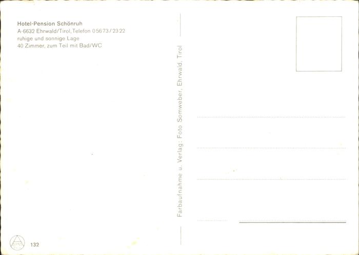 71432063 Ehrwald Tirol Hotel Pension Schoenruh Wettersteingebirge postalisch nicht gelaufen Erhaltung siehe scans KatCode: 11390331070807
