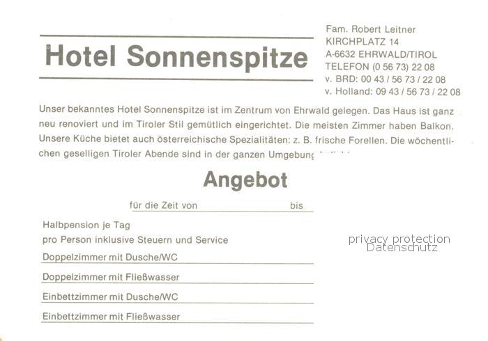 73517179 Ehrwald Tirol Hotel Sonnenspitze postalisch nicht gelaufen Werbekarte (keine Postkarte) Erhaltung siehe scans [FriedD77] KatCode: 11390331070807