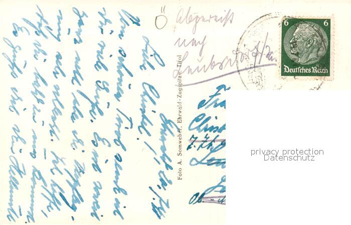 43095317 alte Postkarte Ehrwald Tirol mit Sonnenspitze postalisch gelaufen Erhaltung siehe scans [WerneD78] KatCode: 11390331070807