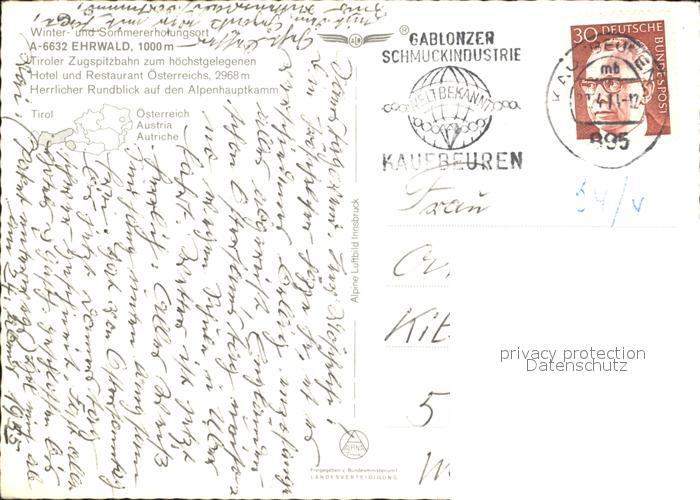 72139638 alte Postkarte Ehrwald Tirol mit Tiroler Zugspitzbahn Panorama postalisch gelaufen Erhaltung siehe scans KatCode: 11390331070807