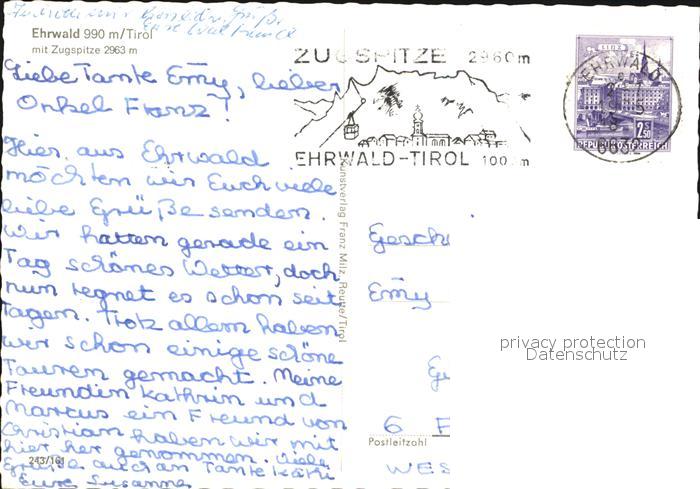 72482641 alte Postkarte Ehrwald Tirol mit Zugspitze postalisch gelaufen Erhaltung siehe scans KatCode: 11390331070807