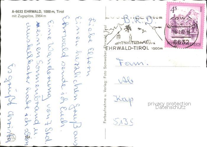72470292 alte Postkarte Ehrwald Tirol mit Zugspitze postalisch gelaufen Erhaltung siehe scans KatCode: 11390331070807
