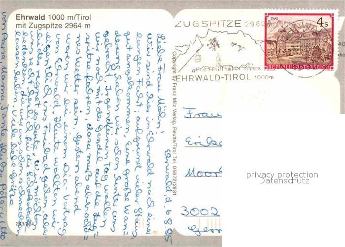 72716707 alte Postkarte Ehrwald Tirol mit Zugspitze postalisch gelaufen Erhaltung siehe scans [LiesaD40] KatCode: 11390331070807