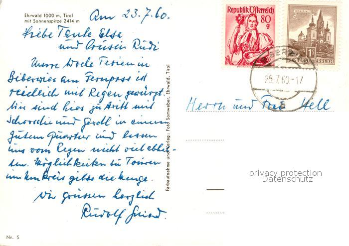 73147520 alte Postkarte Ehrwald Tirol Ortsansicht mit Kirche Baumbluete Sonnenspitze Mieminger Kette postalisch gelaufen Erhaltung siehe scans [FriedD77] KatCode: 11390331070807