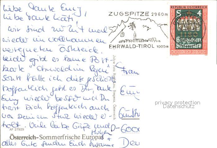 72483544 alte Postkarte Ehrwald Tirol Zugspitze Kirche Gipfelkreuz Wegekreuz Panorama postalisch gelaufen Erhaltung siehe scans KatCode: 11390331070807