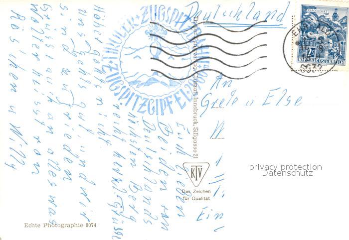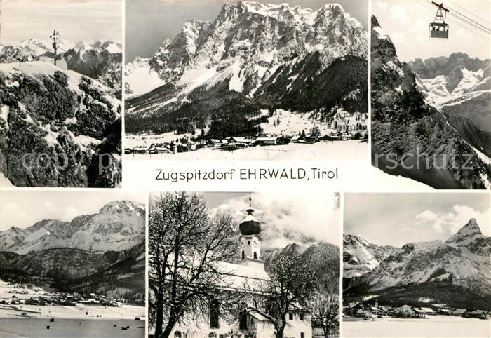 72929052 alte Postkarte Ehrwald Tirol Zugspitze Kirche Teilansicht Seilbahn postalisch gelaufen Erhaltung siehe scans [AndreD76] KatCode: 11390331070807