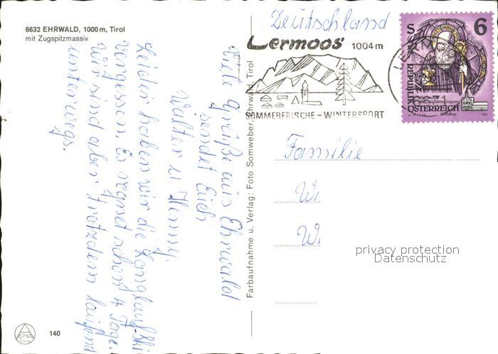 72547584 alte Postkarte Ehrwald Tirol Zugspitzmassiv postalisch gelaufen Erhaltung siehe scans [WerneD78 kv017box] KatCode: 11390331070807