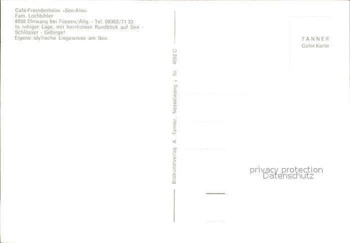 72590734 Ehrwang Cafe Fremdenheim See Alm Schloss Neuschwanstein Forggensee Lechfall postalisch nicht gelaufen Erhaltung siehe scans [WerneD78] KatCode: 11110009777129