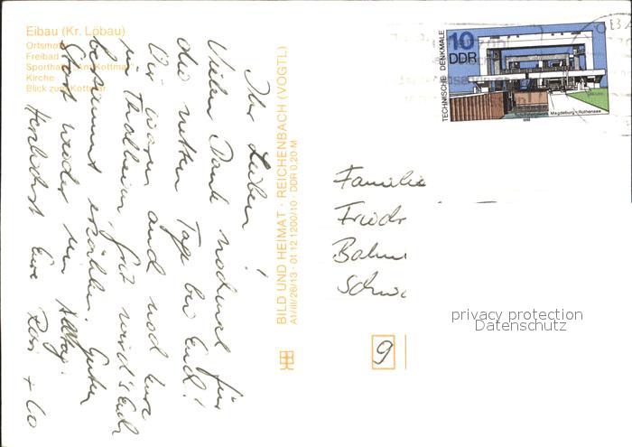 72313567 alte Postkarte Eibau Dorfmotiv Freibad Sporthalle Am Kottmar Kirche postalisch gelaufen Erhaltung siehe scans KatCode: 11110014286090