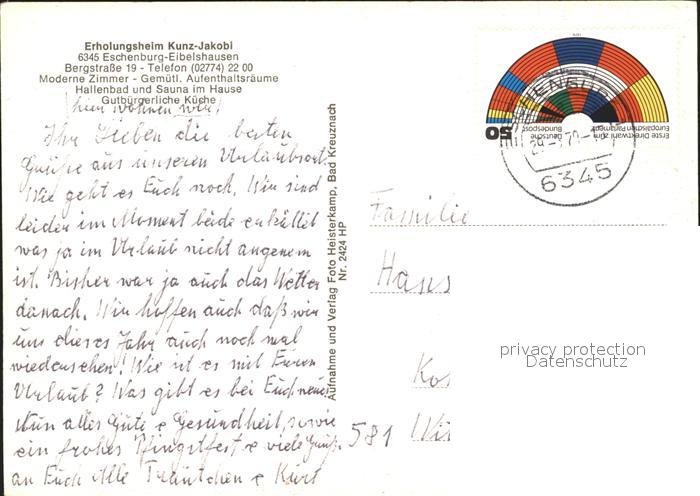 72126758 alte Postkarte Eibelshausen Erholungsheim Kunz Jakobi postalisch gelaufen Erhaltung siehe scans KatCode: 11110006532009