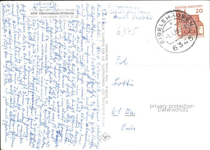 72098858 alte Postkarte Eibelshausen Erholungsheim Kunz Jakobi postalisch gelaufen Erhaltung siehe scans KatCode: 11110006532009