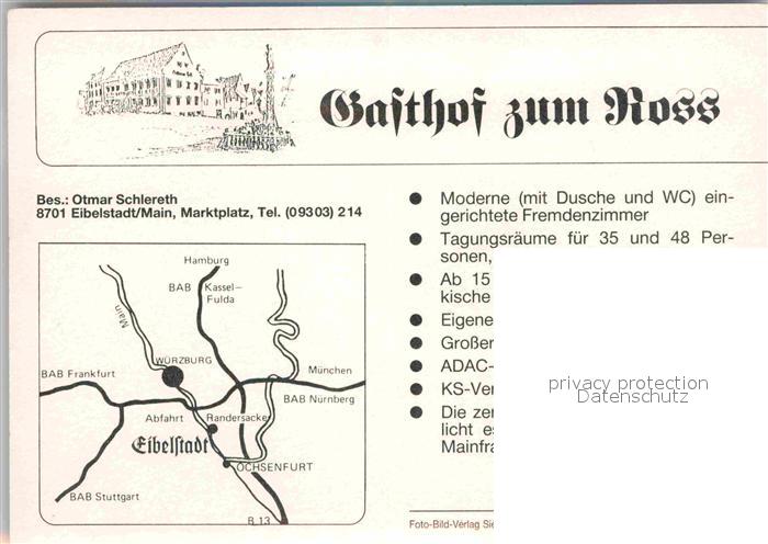 72701413 Eibelstadt Gasthof Zum Ross postalisch nicht gelaufen Werbekarte (keine Postkarte) Erhaltung siehe scans [KathaD79] KatCode: 11110009679124