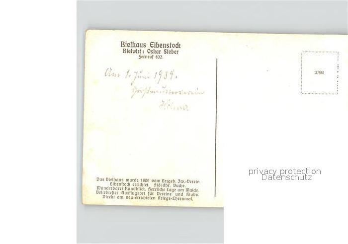 41620244 Eibenstock Ehrenmal Bielhaus postalisch nicht gelaufen Erhaltung siehe scans KatCode: 11110014191120