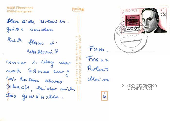 72882893 alte Postkarte Eibenstock Erholungsheim postalisch gelaufen Erhaltung siehe scans [AndreD76] KatCode: 11110014191120