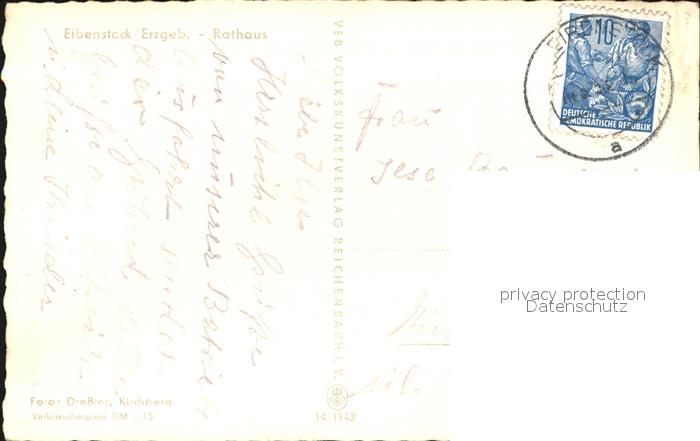 72435566 alte Postkarte Eibenstock Rathaus postalisch gelaufen Erhaltung siehe scans KatCode: 11110014191120