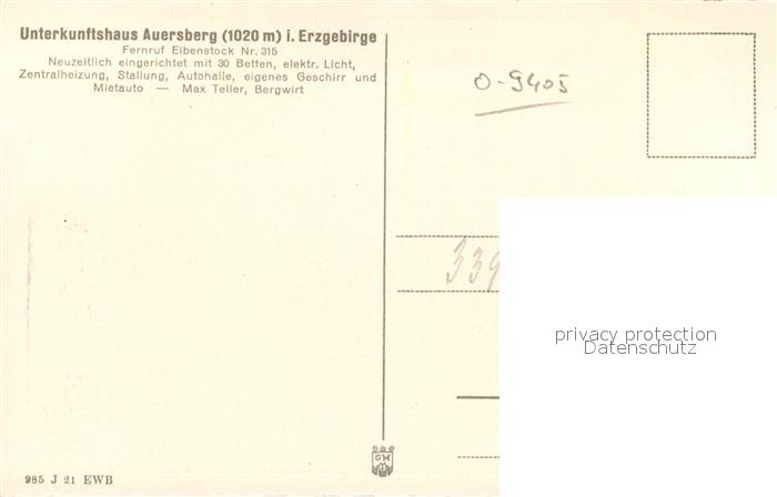 73137075 Eibenstock Unterkunftshaus Auersberg Aussichtsturm Kuenstlerkarte postalisch nicht gelaufen Erhaltung siehe scans [FriedD77] KatCode: 11110014191120