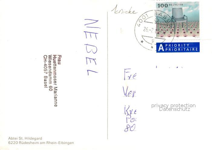 73254853 alte Postkarte Eibingen Abtei St Hildegard Kloster Kirche Blick ins Rheintal postalisch gelaufen Erhaltung siehe scans [FriedD77] KatCode: 11110006439013