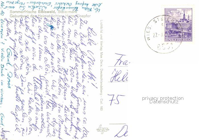 72802833 alte Postkarte Eibiswald Steiermark Ortsansicht mit Kirche Strassenpartie Alpenblick postalisch gelaufen Erhaltung siehe scans [FriedD77] KatCode: 11390225060303