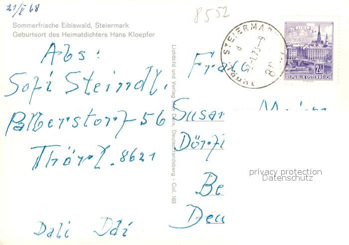 73158630 alte Postkarte Eibiswald Steiermark Panorama Kirche Ortspartie postalisch gelaufen Erhaltung siehe scans [WerneD78] KatCode: 11390225060303