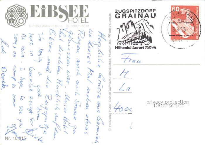 72514311 alte Postkarte Eibsee Eibsee-Hotel postalisch gelaufen Erhaltung siehe scans KatCode: 11110009180118